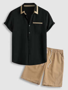 - Product Name: Collar Pattern Sleeves Shirt With Casual Shorts Set